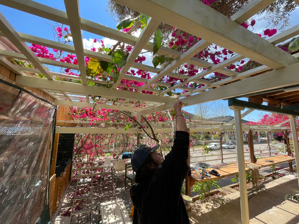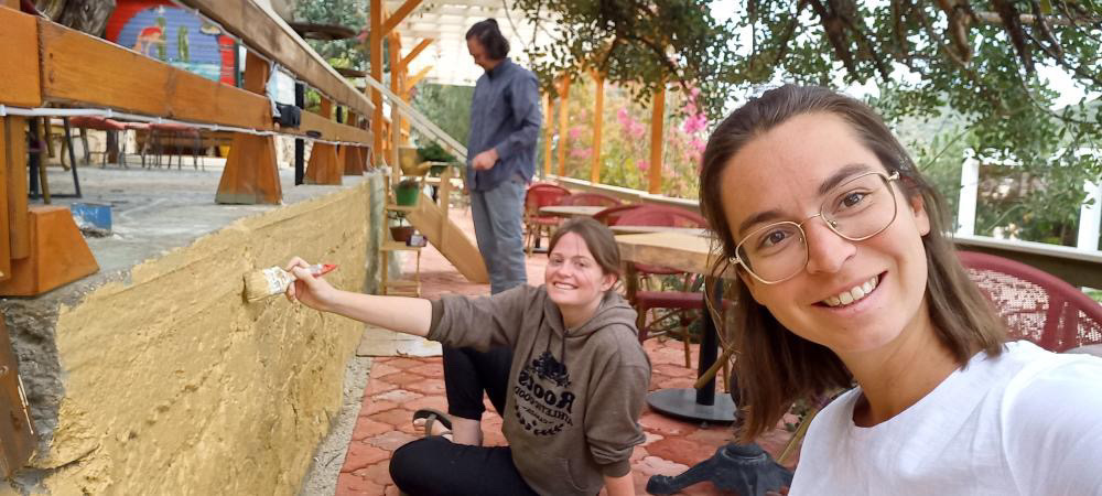 We arrived in Turkey earlier than expected, after leaving a not-so-great workaway in Albania. Though we had planned to come to Turkey later in April for a month-long workaway in Cappadocia, we ended up arriving to the city of Kaş at the end of March. It was a long and mostly sleepless journey that started at 7pm in Vlorë, Albania, and ended the next day at 5pm in Kaş. Two flights and three buses later, we had arrived at our new workaway. We weren’t sure what we’d be doing, as we had organized the workaway just 2 weeks prior, but we were excited to begin a new journey. The position ended up being a perfect fit. We spend 3-4 hours per day helping with renovations (painting pergolas, staining wood, etc.) in preparation for the hostel + bar + restaurant’s opening. Most of our coworkers are Turkish and don’t speak English, but we’re able to have some small conversations, and we’ve even learned a bit of Turkish!