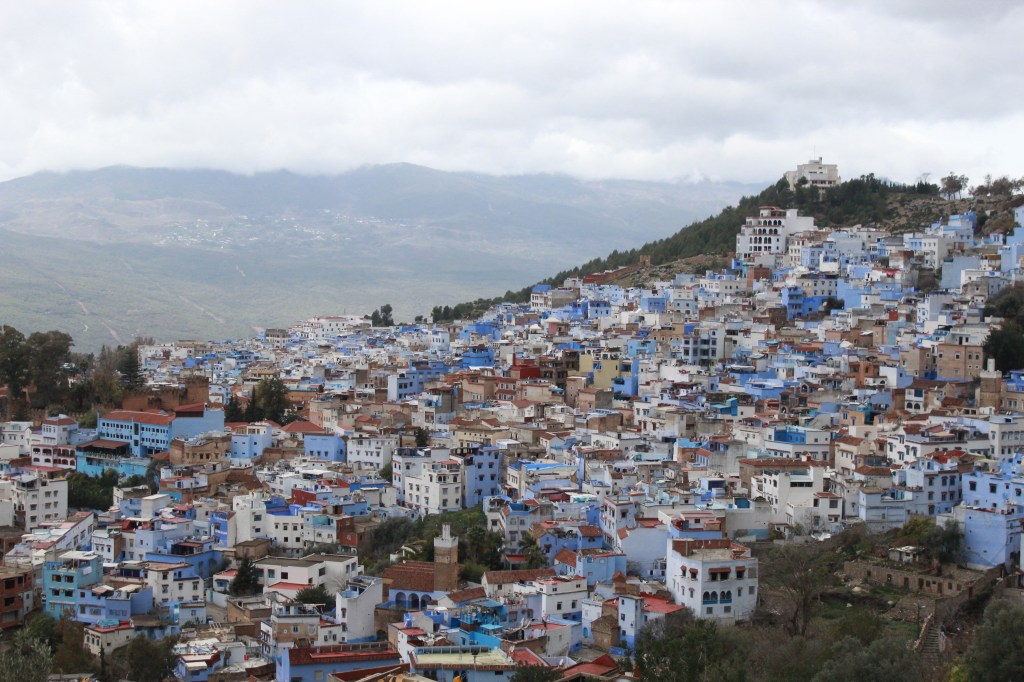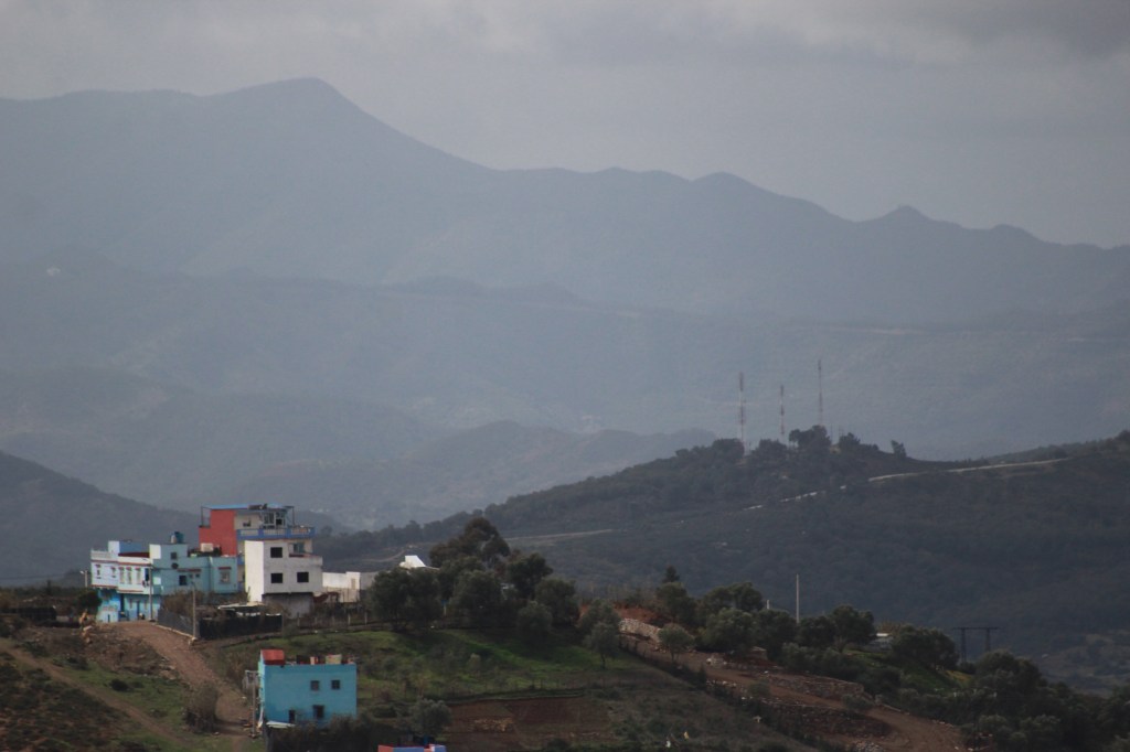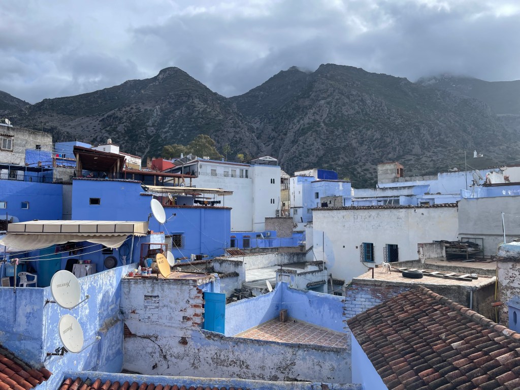We arrived to Chefchaouen after a long and pretty stressful day of travel. Our flight from Malaga experienced some pretty hefty turbulence, to the point that we were unable to land on the first attempt. After descending most of the way, the pilot abruptly pulled up and announced that we wouldn’t be landing at that time. There was a lot of panic in the cabin, and I saw many people praying. It turns out that it was too windy to land, so we circled back over the Mediterranean, and were able to land on our second attempt. We disembarked in Tetouan, Morocco, where we were greeted by the incredibly lush Rif mountains. We found a taxi from the tiny airport to the central bus station, then found a bus from there to Chefchaouen.
