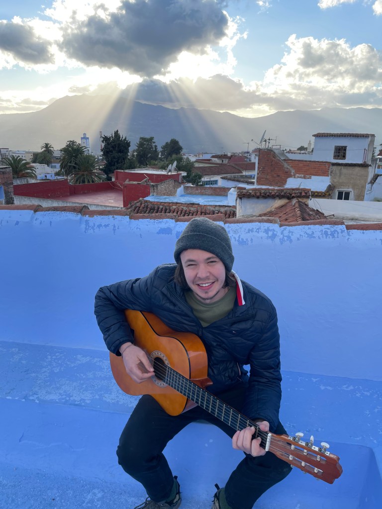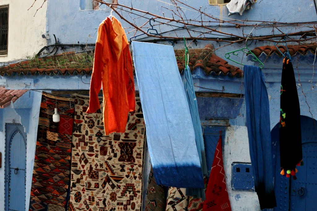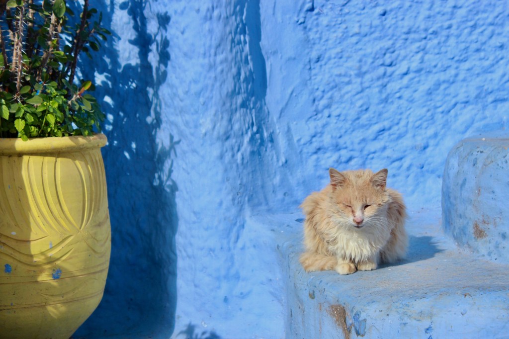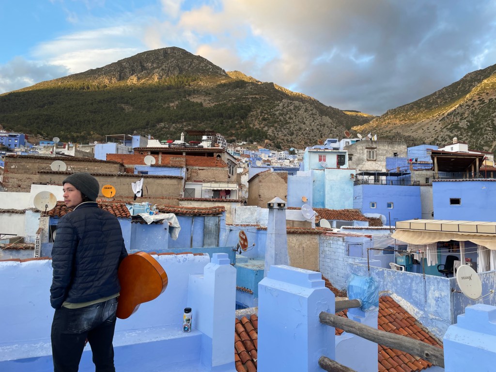 On the ride to Chefchaouen, we noticed that almost all of the men we passed were wearing these wool cloaks with pointed hoods. They would walk the narrow alleyways with their hands in their pockets and heads facing down, making us feel like we’d wandered into a Star Wars movie. We made it to our hostel – Dar Dadicilef but had to wait outside for 20 minutes while the owner was at the mosque. After getting checked in, we went out to enjoy our first Moroccan meal – chicken tagine and mint tea. We sat in the main square eating our meal while also getting harassed by many street cats, something that would come to be a theme of the whole trip. After dinner, we walked through the blue streets a bit before calling it a night.