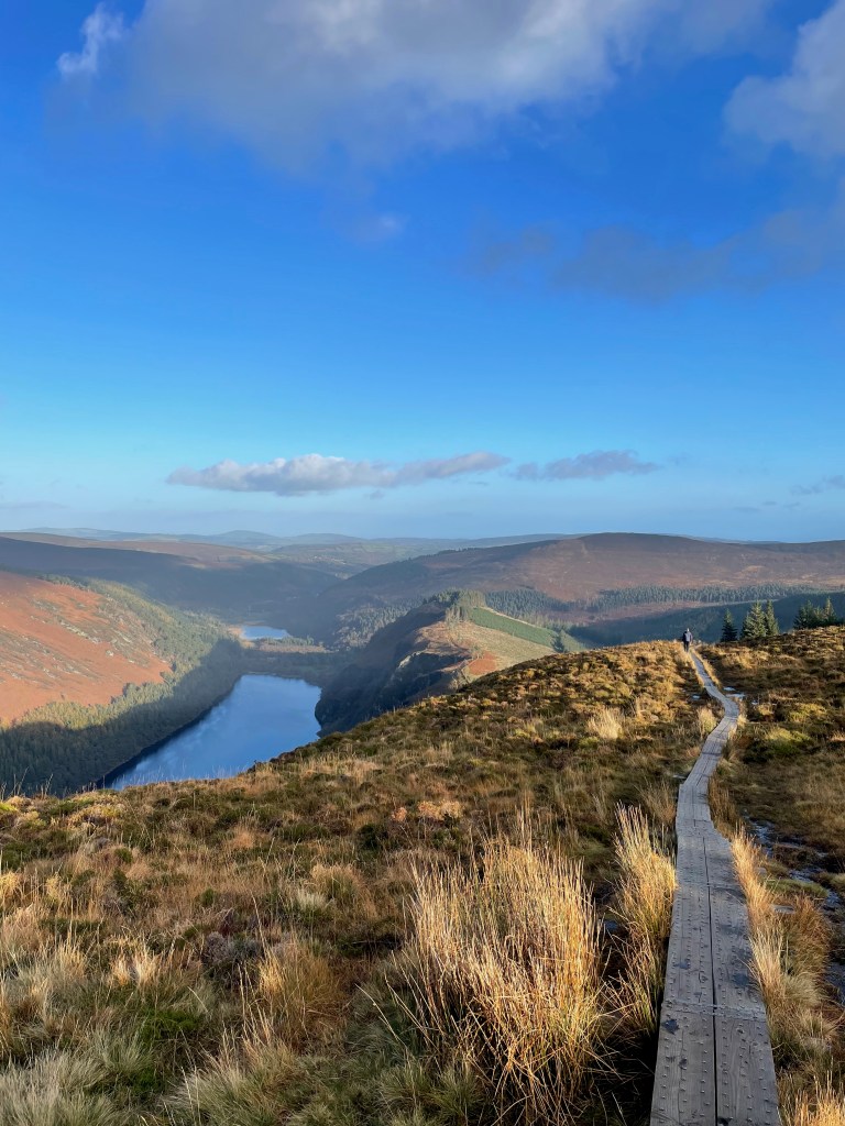 The next day, we started to fall into the routine. Our job at the hostel was to help with housekeeping, and as it was the start of winter, the place was pretty empty. With 12 people on housekeeping duty, our tasks were completed within 2 hours. After finishing up our work for the day, we ate lunch and set out on the most famous hiking trail in Glendalough – the Spinc, or White Trail. This ended up being the best hike we did during our time in Glendalough, and honestly my favorite hike we’ve done during our whole time in Europe. The trail wound through the woods and along a lake, then climbed up a hill next to a waterfall, over the cliffside into a valley filled with deer, and then came back down along some switchbacks, followed by another incredible waterfall. The views for the entire hike were much better than I had ever expected to see in Ireland. The fall colors were still showing – everywhere we looked were burnt oranges, deep reds and maroons, various shades of green, yellow, and brown. We came back feeling elated, but exhausted and I also noticed that I had begun to feel sick.