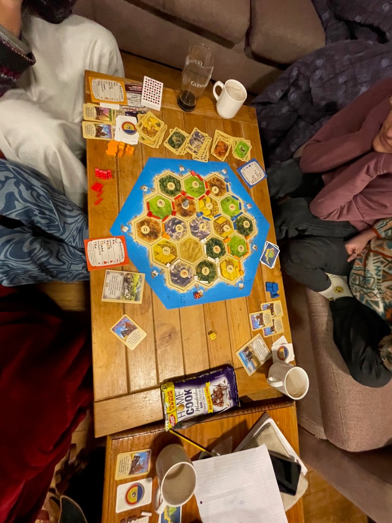 After my break from civilization and the hostel social scene, I was finally ready to give it another shot. I felt refreshed and ready to make some friends. I remember talking to another volunteer, Martha, for a long time one afternoon, after which we quickly became great friends. Every night there seemed to be an activity. Some nights we’d all play cards, other nights we’d watch a movie, and on special occasions someone would make a meal from their country or we’d have a potluck. On days off, we’d adventure to nearby towns for groceries, pubs, or to go on a cliff walk by the sea. A few weeks into our stay, we discovered the game Settlers of Catan, which jumpstarted a new obsession. We began to play Catan every single night, sometimes even multiple times a day. Martha and I were very into it, and once we got another volunteer, PJ, hooked, the three of us would play every afternoon as well. PJ also taught us a couple of different card games, my favorite of which was Taiwanese poker.